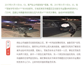 20**年02月15日,我司接受某產(chǎn)險公司委托,對其承保的蘇BXXXXX保時捷卡宴在20**年01月17日21時在甘肅省武威市天祝藏族自治縣行駛時避讓車輛導致標的車撞墻一案進行調(diào)查。